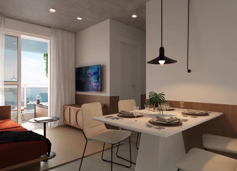 Apartamentos à venda com 1 e 2 quartos com varanda e opção de suíte.